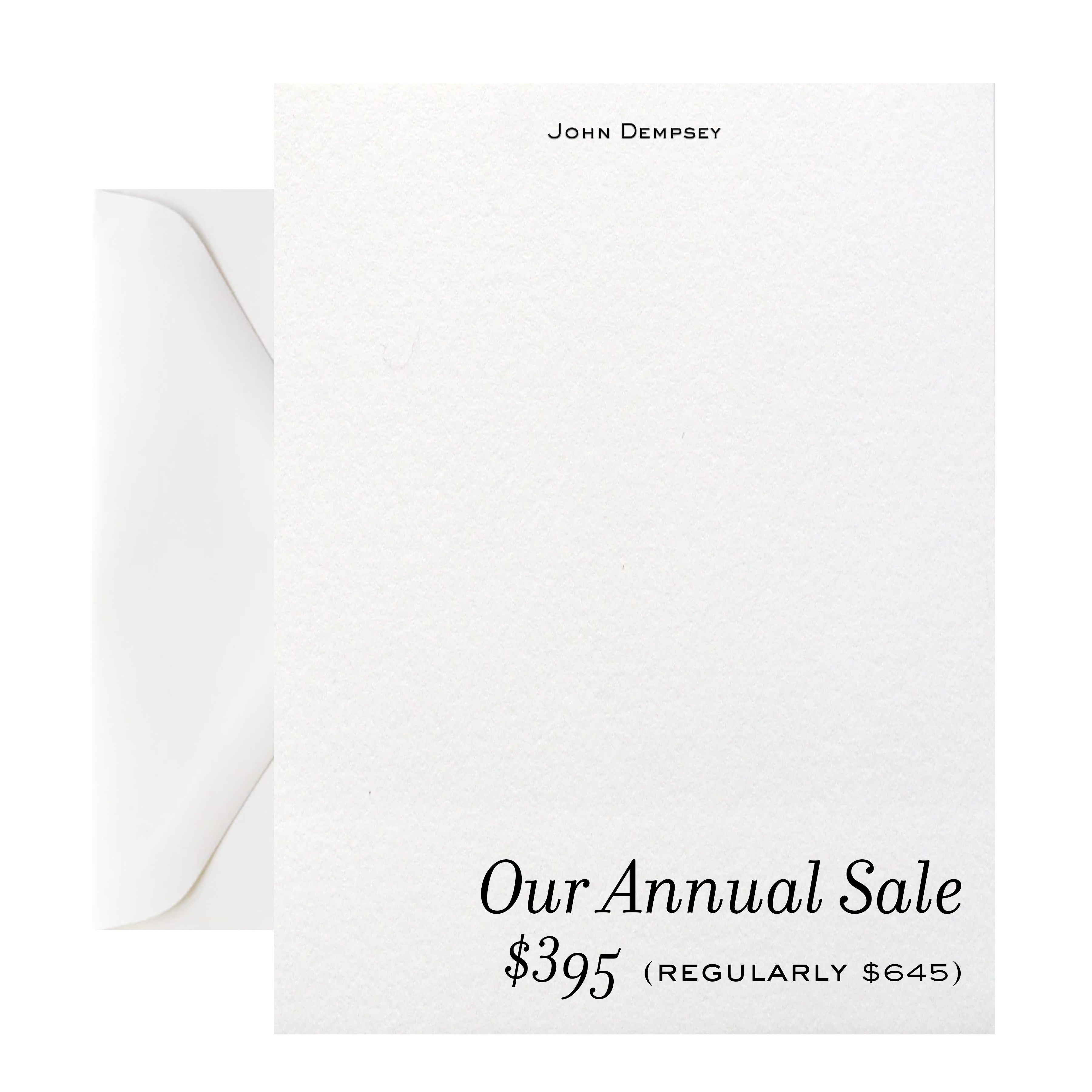 OUR SALE PRICE: $395. Regularly $595. We invite you to discover an American tradition with the art of correspondence during our Annual Sale. Start building your stationery wardrobe today!