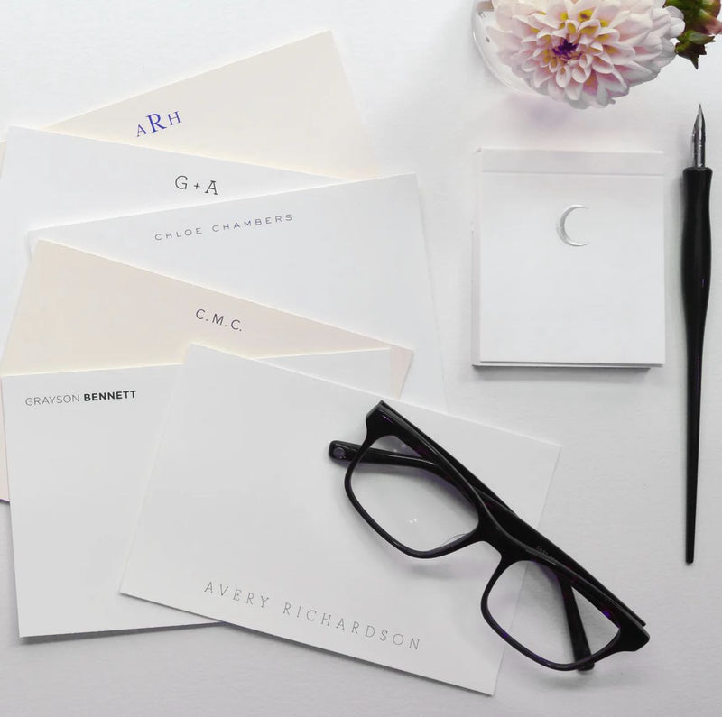 Our Annual Sale is in full swing it’s the perfect time to have some fun with your correspondence! If you’re familiar with our sale, you know the drill: a new one-line name plate, 100 engraved cards and plain envelopes.